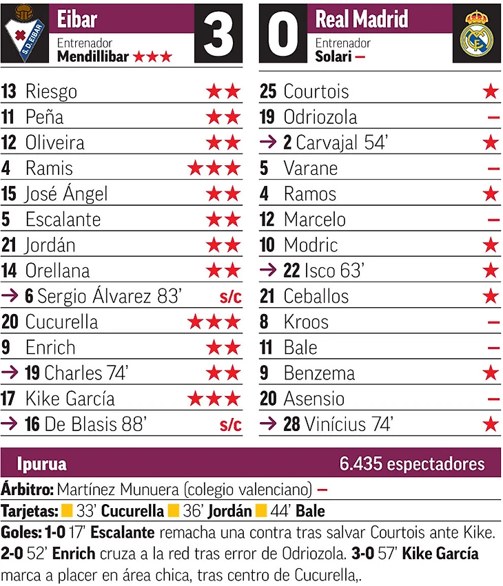 Оценки игроков «Эйбара» и «Реала» по версии газеты Marca. Минус — неудовлетворительное выступление, s/c — без оценки (игрок провёл слишком мало времени на поле).