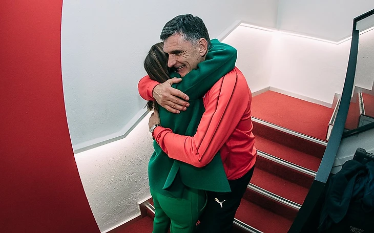 Президент «Эйбара» Амайя Горостиса и главный тренер Хосе Луис Мендилибар празднуют победу.