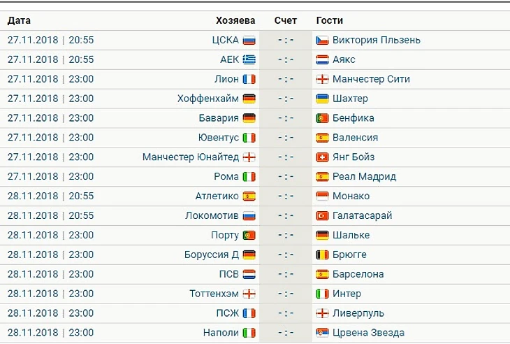 Превью 5 тура ЛЧ. Предполагаемые составы