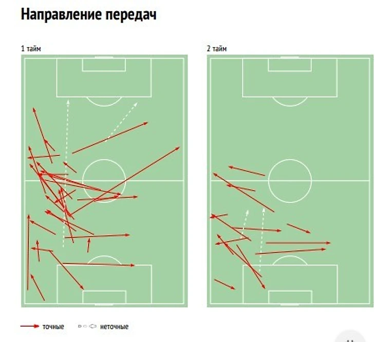В таких условиях много пространства для движения и начала атаки получали центральные защитники Джикия и Кутепов, двигаясь в ширину поля. Оба большинство действий совершили на флангах (Джикия – 53 ТТД слева, только 24 ТТД в центре; Кутепов – 56 ТТД справа, только 28 ТТД в центре). По количеству передач вперед их данные сопоставимы с показателями опорных (к примеру, у Кутепова 21 пас вперед, у Глушакова – 20).
