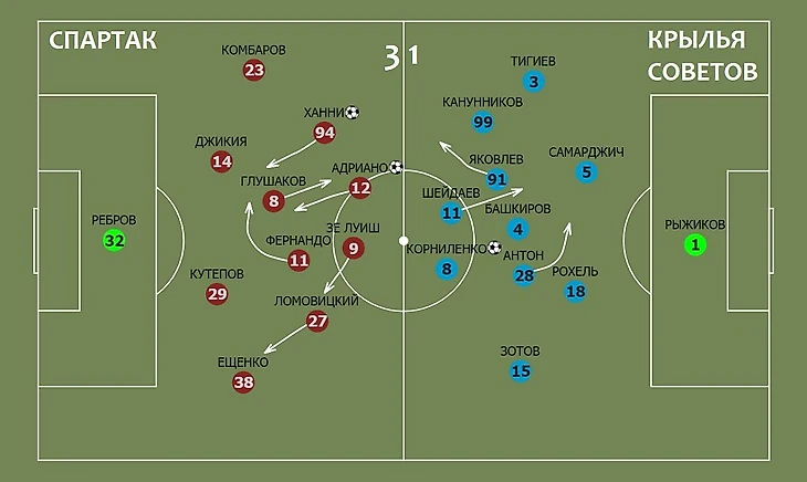 Однако стоит отметить, что «Спартаку» противостоял соперник, тренер которого проповедует схожую философию «сексуального» футбола. «Крылья» не оборонялись низко и давали красно-белым много пространства, которое можно было атаковать.