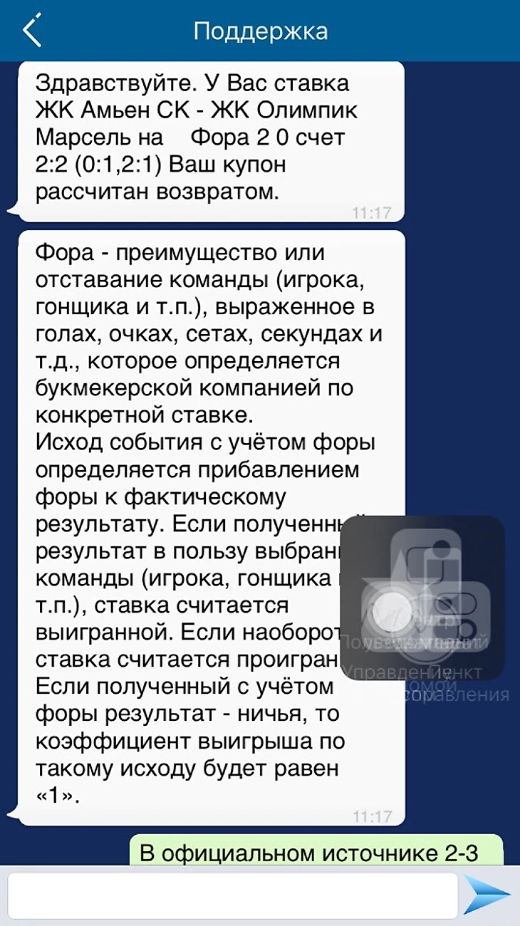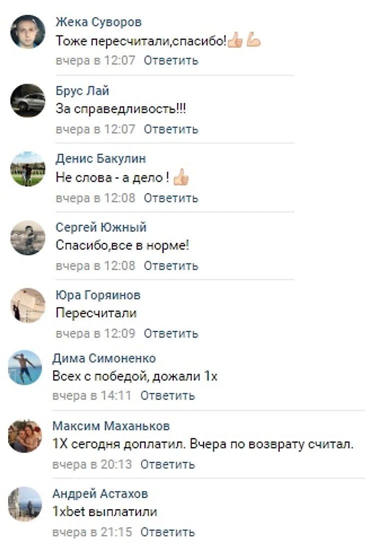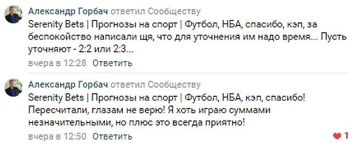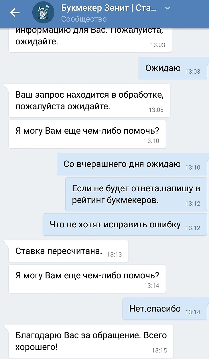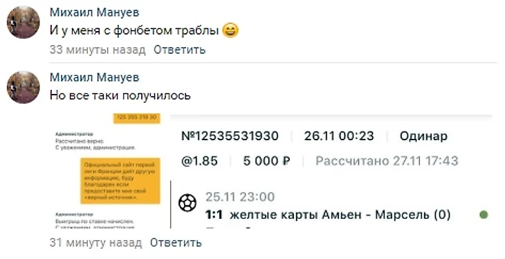 После часа борьбы с букмекером, пошли первые успешные отклики: