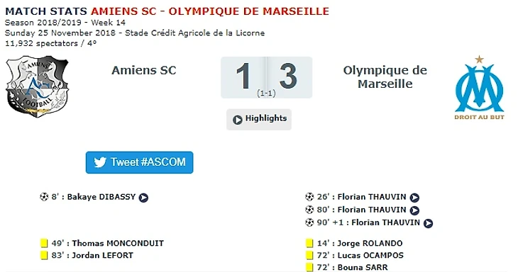 Результат посмотрел с телефона и лёг спать. С утра обнаружилось, что по жёлтым счёт по факту 2:3, на 72-й минуте предупреждение помимо Окампоса получил ещё Сарр (за неспортивное поведение). Таким образом, ставка зашла и букмекеры должны были зачислить выигрыш. Подтверждение по результату с официального сайта французской Лиги 1: