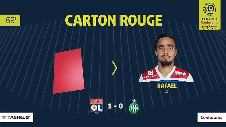 И тут Гассе решает переходить на стандартную для себя схему с четырьмя защитниками, выходят Амума на правый фланг атаки, Дебюши переходит направо в защиту со своими фирменными подключениями, и Салибур, взрывной вингер из «Генгама», похожий внешне на бойца ММА больше, чем на футболиста. И тут «Лион», наверно, понимает, что уж слишком хорошо для них все идет, без игры вообще, без моментов и ведут 1-0 еще и в дерби важнейшем. И игроки подсказывают Рафаэлю, давай, наверно, удаляйся. Мы хотим выиграть героически, а не просто так. И Рафаэль в центре поля берет и прыгает двумя ногами в Габриэля Силву! Зачееееем??? Зачем спрашивается? Да, он не сильно попал именно в ногу Габриэлю, но такие прыжки в принципе опасны, так что красная по делу.