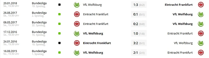 "Вольфсбург" выиграл три из четырех предыдущих матчей против "Айнтрахта"