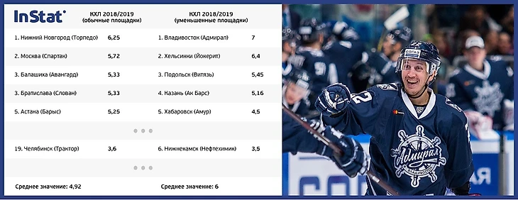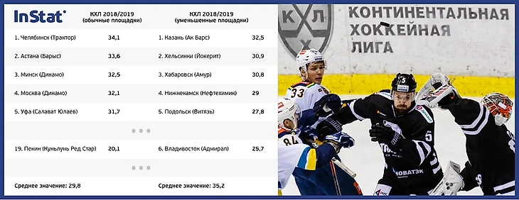 Сейчас в КХЛ 6 клубов из 25 используют не российский формат: два дальневосточных – «Амур» и «Адмирал», «Йокерит», «Витязь», «Ак Барс» и «Нефтехимик». В прошлом сезоне на уменьшенной площадке играли в Тольятти, но после реформы лиги «Лада» оказалась в ВХЛ.
