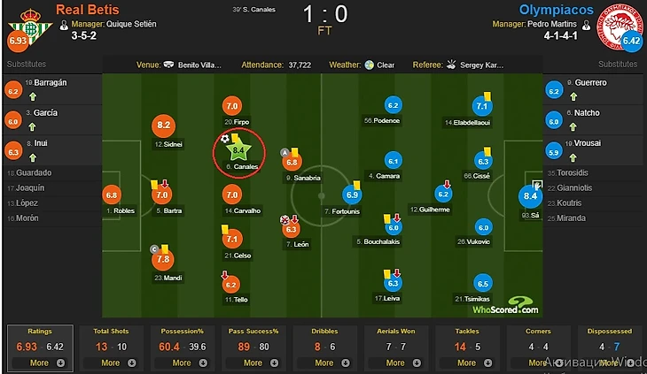 Хотел посмотреть матч "Бетиса" целиком, после сумасшедшего поединка против "Барселоны", и понять, за что так нахваливают главного тренера Кике Сетьена. Я, в принципе, знаю за что, но тут предоставилась хорошая возможность. Из множества матчей ЛЕ, матч "Бетиса" с "Оли" многое решал в этой группе. Может быть, матч с греками и не показатель, но все равно интересно было глянуть на игру "огурцов" в Европе, еще и с мотивацией выйти в плей-офф за тур до конца группового этапа против крепкого греческого гранда.