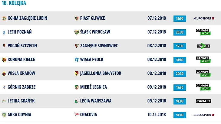 Фото: ekstraklasa.org, slaskwroclaw.pl, jagiellonia.pl, gornikzabrze.pl, miedzlegnica.eu, legia.com, zaglebie.eu, cracovia.pl, piast-gliwice.eu.