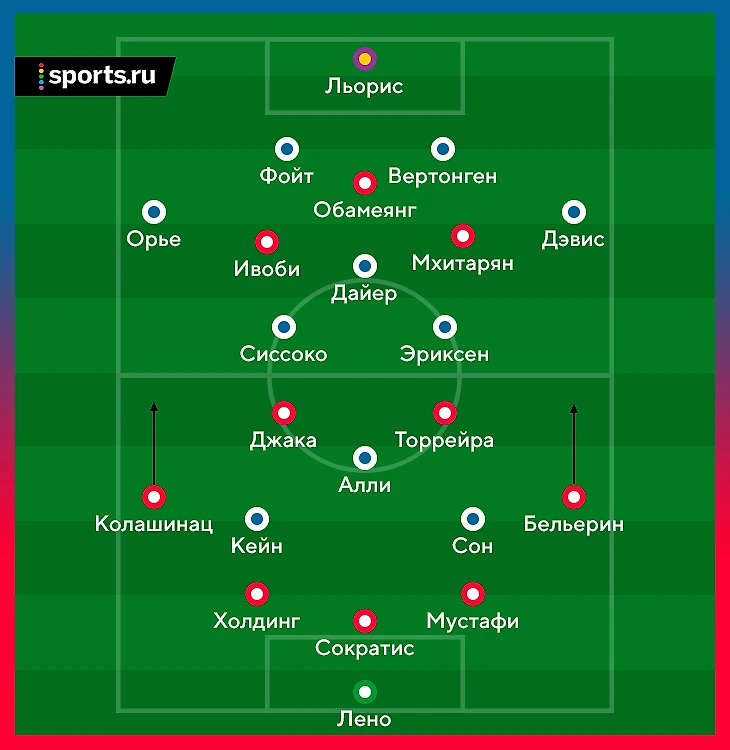 Рэмзи играл против Дайера, пара нападающих накрывала центральных защитников, фланговые защитники играли против фланговых защитников, Джака и Торрейра держали Эриксена и Сиссоко, тройка защитников «Арсенала» была против трио Сон-Алли-Кейн.