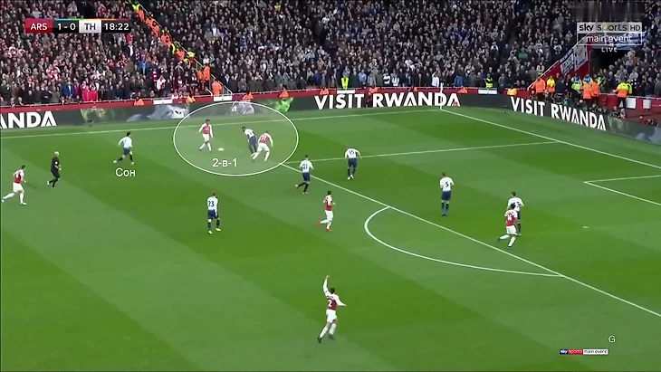 Результат: тройка Сон-Алли-Кейн часто напрямую противостояла тройке защитников «Арсенала». Это делало «Тоттенхэм» опасным при прессинге и быстрых атаках, но если «Арсенал» проходил первую волну давления, то разрывал соперника на флангах (почти всегда там было 2-в-1).