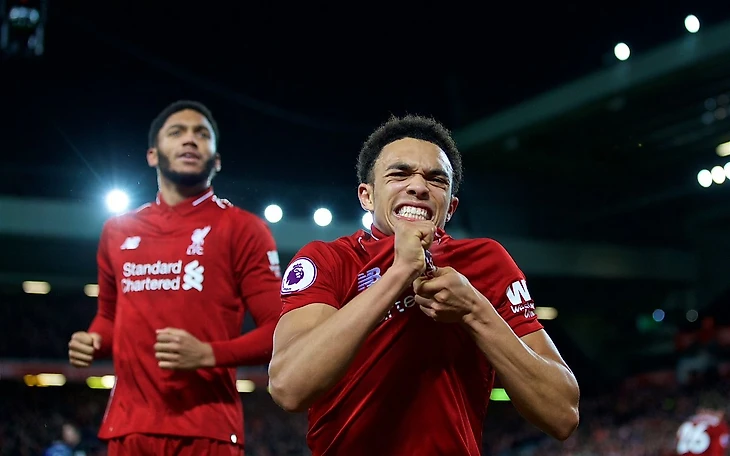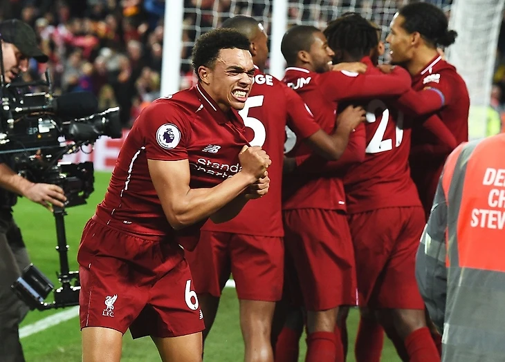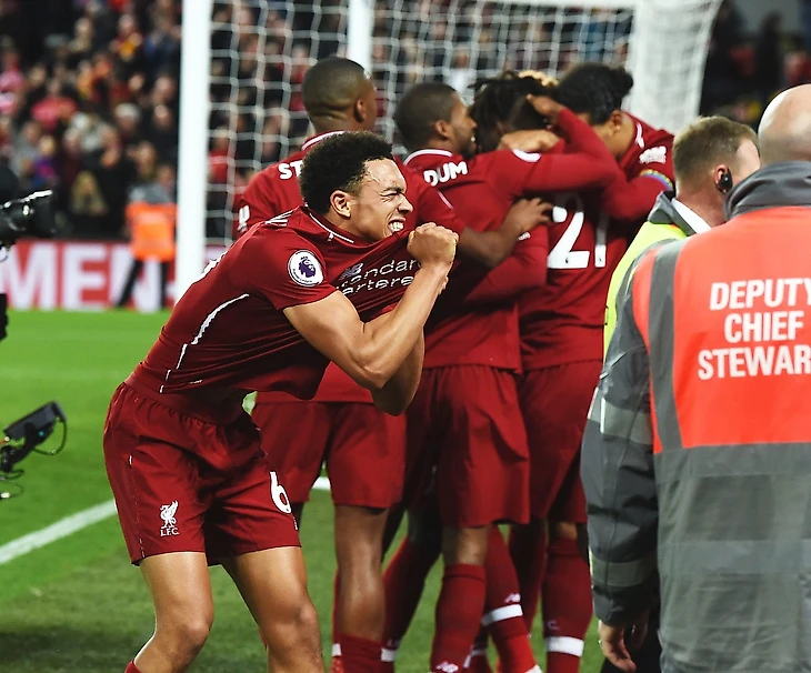 А молодой защитник Трент Александр-Арнольд был настолько счастлив, что чуть не порвал на себе футболку.