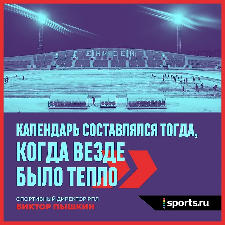 Но у нас ведь футбол не для болельщиков. Часто даже не для футболистов, а для чиновников РФС и РПЛ, которым надо выполнить план по футбольным матчам, который составляли откровенно нездоровые люди. Спортивный директор РФС Виктор Пышкин заявил: «Календарь составлялся тогда, когда еще тепло везде. Никто не мог сказать, какая погода будет в любом месте». Я и не сомневаюсь, что люди, составлявшие календарь, не знали, что зимой в большей части России морозы, которые не располагают к тому, чтобы играть в футбол.