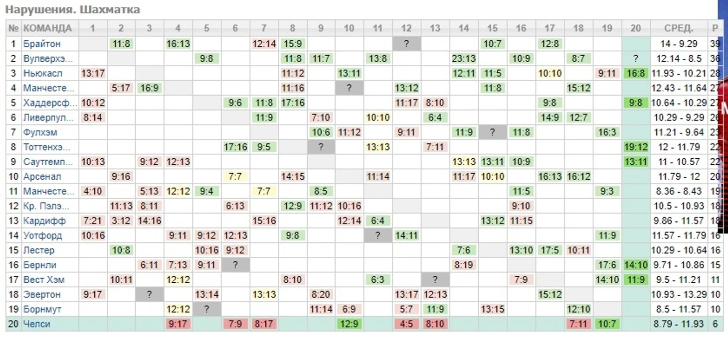 Что касается "Челси", то Сарри проповедует команде более технические навыки, нежели грубую игру. "Пенсионеры" довольно аккуратны против соперников и чаще проигрывают, нежели выигрывают. А если быть точнее, то за 14 туров они смогли взять верх только дважды, и оба раза на «Стэмфорд-Бридж». В гостях ни одной победы, а индивидуальный тотал на выезде составляет 9,67, что делает "Челси" одной из самых прилежных команд чемпионата.