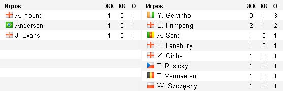 В составе хозяев по прежнему отсутствуют из-за травм Неманья Видич, Майкл Оуэн, Рафаэль да Сильва и Антонио Валенсия. Под вопросом находится участие в матче Рио Фердинанда. Но кого сейчас волнует этот вопрос, учитывая ту изумительную игру, которую показывает наша молодежь. Джонни Эванс, Смоллинг и Джонс без проблем сдержали атакующие порывы «шпор», и думаю именно они и выйдут в старте против «Арсенала». Ну исключение может составить Джонни, который возможно уступит свое место в составе Рио.