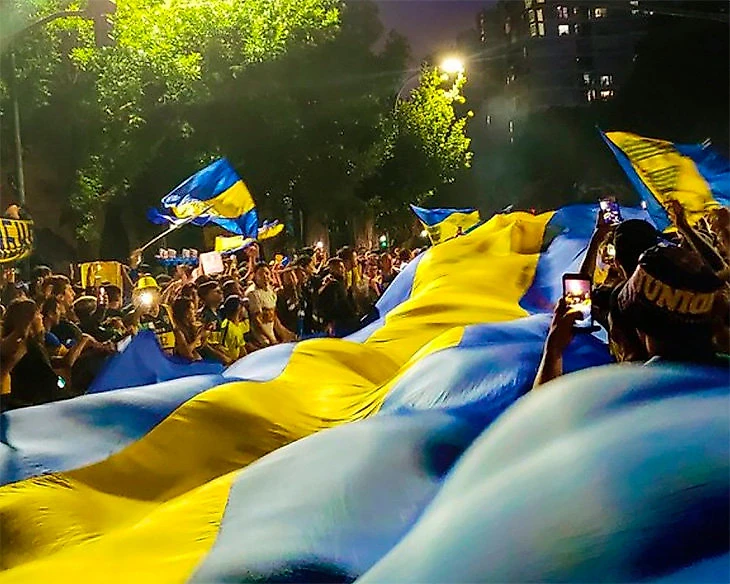 Фанаты «Боки» очень красиво проводили команду в Мадрид – с салютом и желто-синим дымом