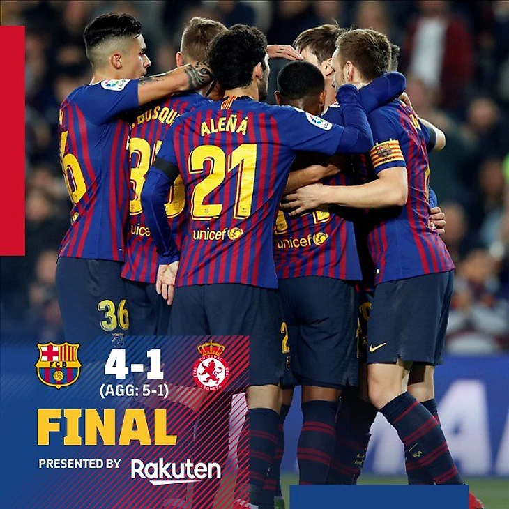 Вальверде на пресс-конференции: «Уже в первом матче мы поняли, что это хорошая и настойчивая команда, что дабы пройти их, нам нужно уверенно и с желанием идти вперед. После того как мы выстояли перед их прессингом и смогли наладить связь с Аленьей, мы смогли связаться и с линией нападения, это было сложное испытание, и с этой задачей хорошо справились те игроки, имевшие мало игрового времени в сезоне, а также футболисты «Барсы Б»».