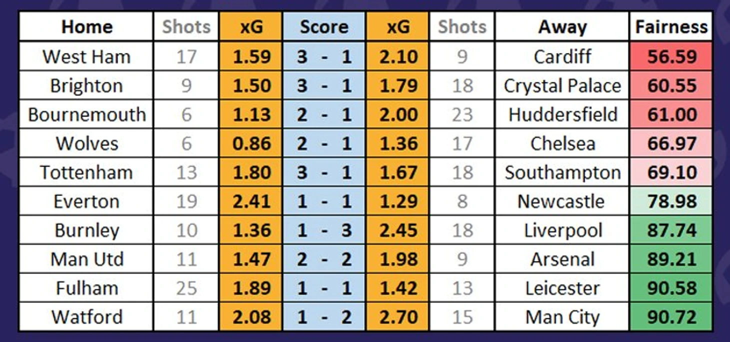 Самым несправедливым (с точки зрения модели xG) результатом стала домашняя победа "Лестера" над "Уотфордом" со счётом 2-0.