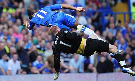 Пол Дойл с подробностями неприятного инцидента: «Дидье Дрогба был доставлен в больницу после того, как потерял сознание в столкновении с вратарем «Норвич Сити» Джоном Радди в победном для «Челси» матче на «Стэмфорд Бридж» (3:1). Нападающего унесли на носилках, а вскоре отвезли в госпиталь, в котором он прошел медобследование, которое не выявило у 33-летнего игрока серьезных повреждений. Инцидент произошел на 65-ой минуте - Радди, выскочивший на перехват случайно ударил ивуарийца в лицо. Удар был настолько сильный, что Дрогба, казалось, потерял сознание еще до того, как упал на газон. Игроки обеих команд сразу же подозвали медицинскую бригаду, которая оказывала Дрогба помощь в течении восьми минут, после чего унесли его на носилках, выражая серьезную озабоченность за его здоровье. Виллаш-Боаш не стал обвинять в этом моменте Радди. «Такой физический контакт может произойти в любом матче, в любой игре», сказал португалец. К счастью, в тот же вечер игрок покинул госпиталь и в данный момент находится под наблюдением клубных врачей.»