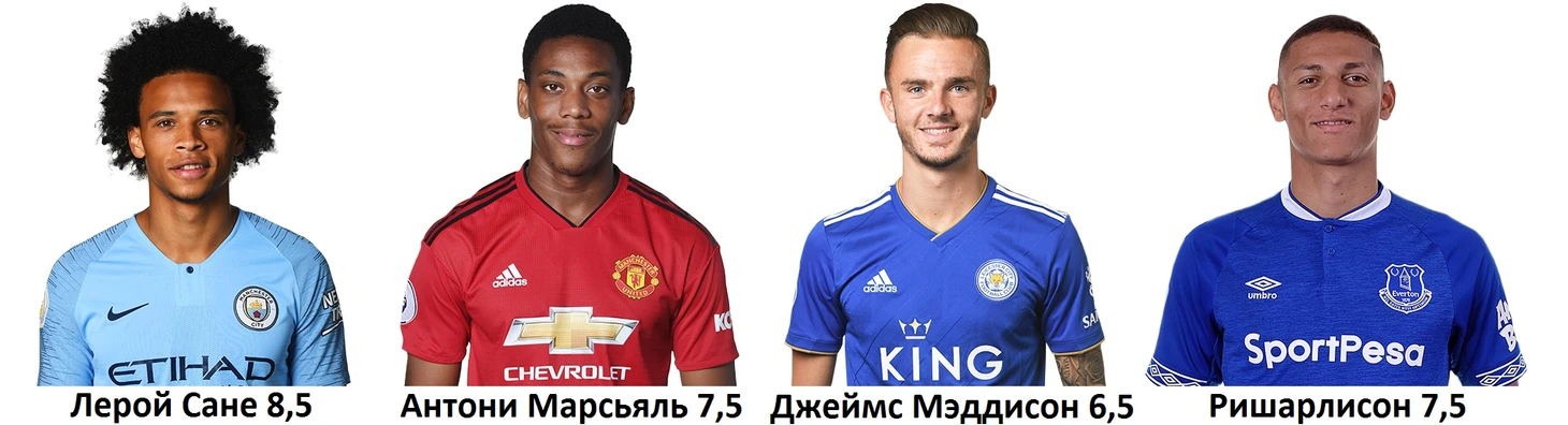 Полузащита. Левый вингер горожан Лерой Сане 8,5 набирает в среднем по 8.4 очка за последние 5 матчей и, полагаю, даже поездка на Стэмфорд Бридж не должка смутить немца. Его партнер Рахим Стерлинг 9,0 ожидаемо получил отдых и рвется упрочить лидерство Сити, неприступными для англичанина в этом сезоне были только ворота Юнайтед, Вулвз и Ливерпуля, во всех остальных Рахим набирал приличные очки. Антони Марсьяль 7,5 забил 7 голов в 8 матчах и готовится к домашней встрече с Фулхэмом, который продолжает пропускать в каждом матче, что-то добавлять излишне. В связи с травмой Арнаутовича, основной выбор в полузащите падает на Фелипе Андерсона 7,5, наколотившего 4 мяча в последних 5 играх, справедливости ради, конкурент у него все-таки есть: Роберт Снодграсс 7,0 своим пасом трижды принёс партнерам гол за прошедшие 3 поединка. Судя по всему в лазарете было достаточно скучно, потому что Кристиан Эриксен 8,5 теперь не покидает поля без результативного действия, учитывая, что шпоры забивают в среднем больше 3 за игру в ворота Лестера в последних встречах, шансы у датчанина будут.