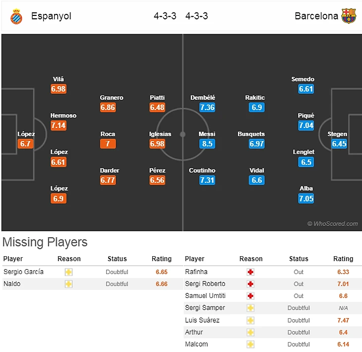 На что обратить внимание: На Луиса Суареса(9,5). Неизвестно какие методы восстановления использовал уругваец, но уже вчера он вернулся в общую группу и вполне может принять участие в каталонском дерби.
