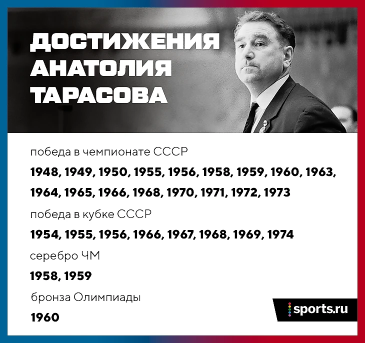 Анатолий Тарасов – легендарный советский тренер, 17-кратный чемпион СССР с московским ЦСКА. Как главный тренер советской сборной становился серебряным призером чемпионата мира и бронзовым – Олимпийских игр-1960.