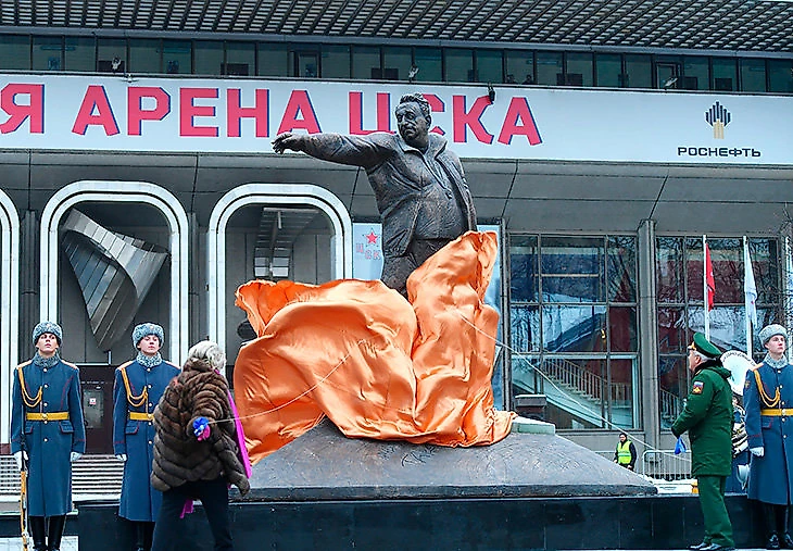 В понедельник состоялось торжественное открытие памятника заслуженному тренеру СССР Анатолию Тарасову. Монумент установили перед ЛДС ЦСКА на Ленинградском проспекте и представили именно 10 декабря 2018-го – в день 100-летия тренера.