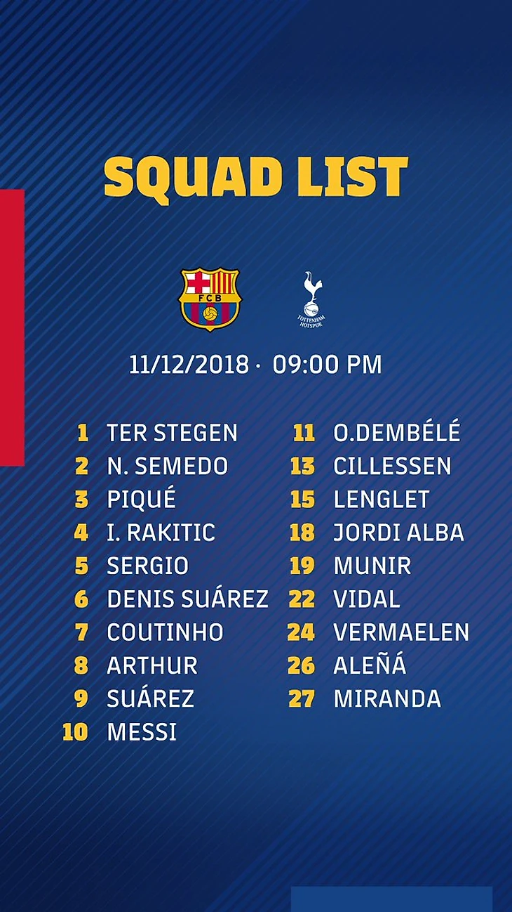 В заявке уже забронировавшего за собой первое место по итогам группового раунда еврокубка каталонского гранда обращает на себя внимание присутствие лишь одного воспитанника «Ла Масии», играющего за «Барсу Б», левого защитника Хуана Миранды. При этом заявка состоит из 19 человек, а потому один из них не попадет в финальную заявку.
