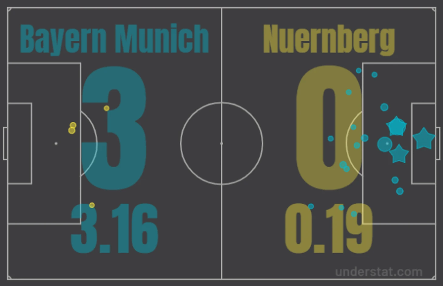 Тренер «Нюрнберга» после матча сетовал на то, что команда по плану хотела навязать мюнхенцам силовую борьбу, но игроки «Баварии» оказались чересчур быстры. Неудивительно, что у гостей за всю игру всего 6 фолов — очевидно, просто не могли догнать баварцев. По такой встрече тяжело судить о форме хозяев — впрочем, предстоящая встреча с «Аяксом» поможет кое-что прояснить.