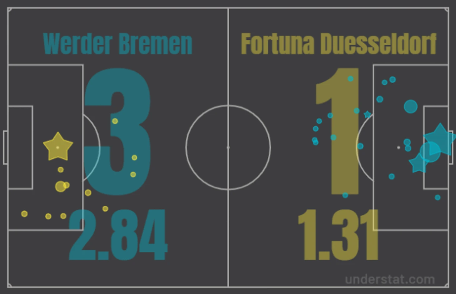 «Вердер» отметился владением мяча в 65 % и при этом нанес 23 удара по воротам соперника (против 9 у «Фортуны Д»). Это становится новым клубным рекордом в сезоне.