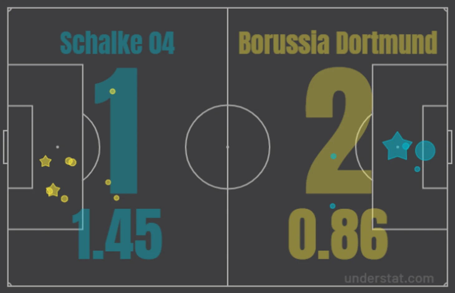 В итоге встреча оправдала ожидания по накалу — желтые карточки, VAR, пенальти, много борьбы. Странное дело — по xG хозяева превзошли гостей, но во всех обзорах фигурируют только моменты у ворот «Шальке». У хозяев, кроме пенальти, можно вспомнить разве только удар Бургшталлера, но и там перед этим мяч попал ему в руку.