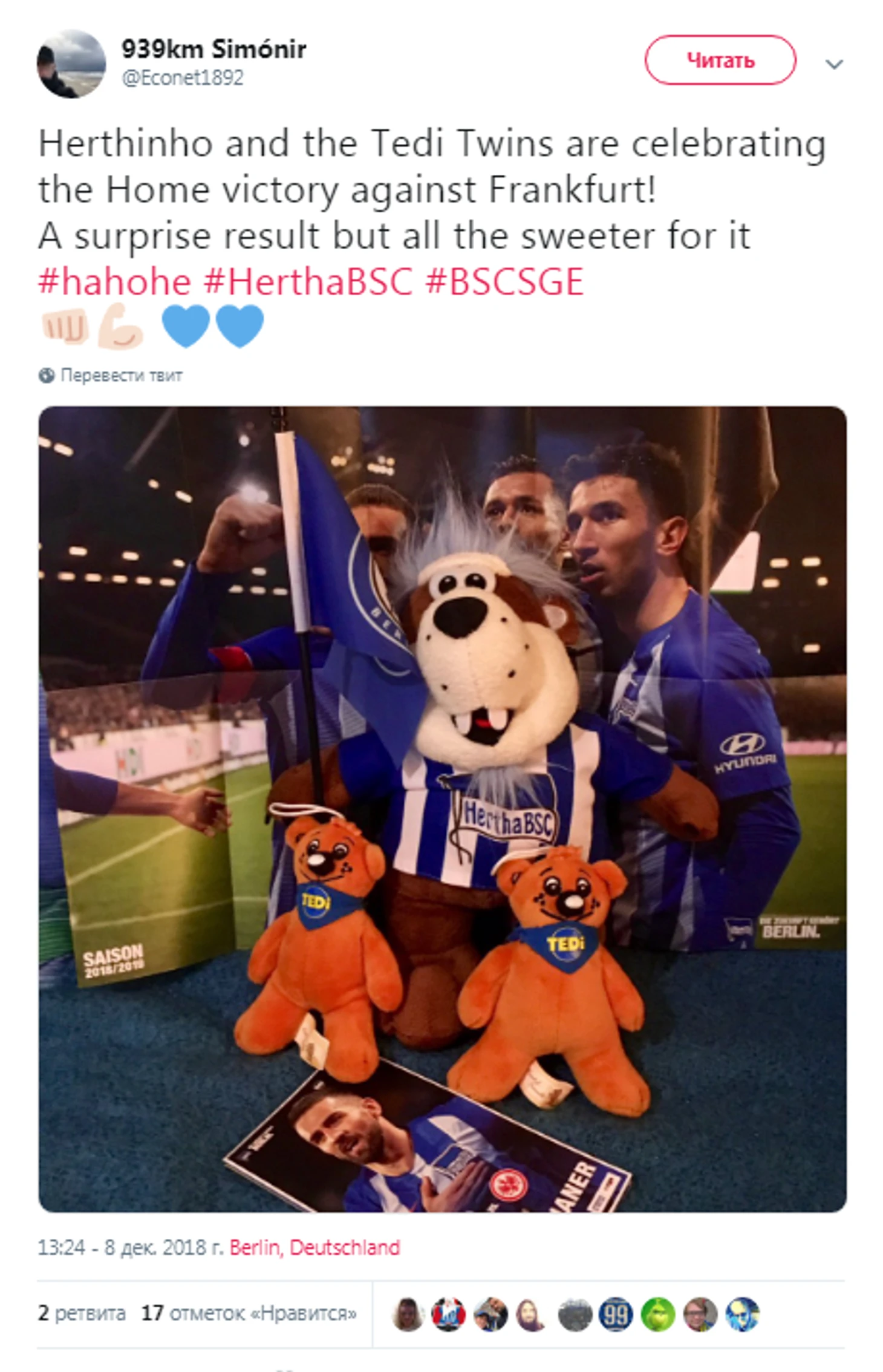«Герта» отпраздновала вторую победу подряд, после того как 6 игр в Чемпионате оставалась без побед.