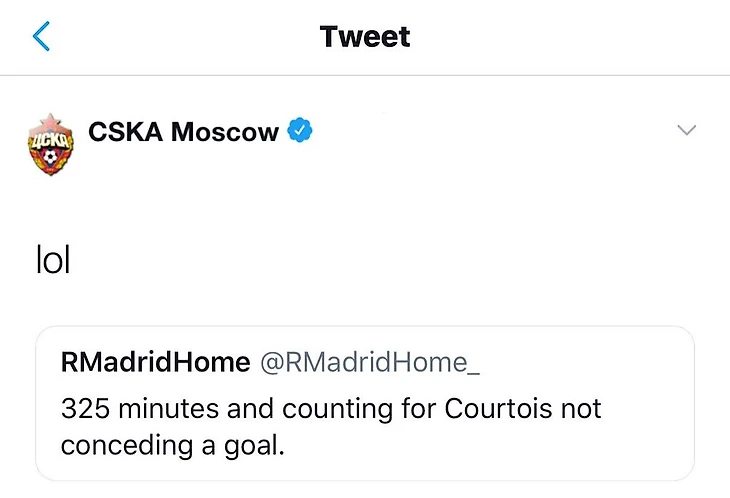 Реал: Прошло 325 минут и я надеюсь, что Куртуа не пропустит сегодня гол