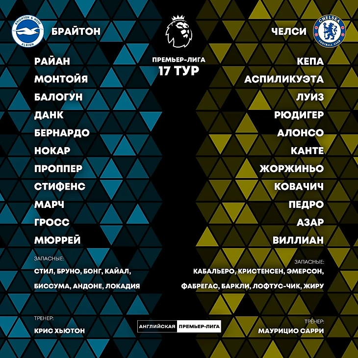 У Маурицио Сарри все было не так. "Синие" не проигрывали в первых двенадцати матчах чемпионата, пока Тоттенхэм Почеттино не остановил их серию (1-3). Затем была победа над Фулхэмом (2-0), и тут машина снова дала сбой на Вулверхэмптоне (1-2). Казалось, что оппоненты разгадали секретную формулу успеха Сарри (диспетчер Жоржиньо), накануне матча с Манчестер Сити лондонцы выглядели абсолютными андердогами. У "Сити" все было слишком хорошо. На удивление всем "аристократы", хоть и не так уверенно, как могло показаться по финальному счету (2-0) обыграли "горожан", нанеся тем самым первое поражение команде Гвардиолы в чемпионате. С этими результатами они выходят на матч с Брайтоном.