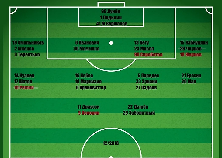 * На конец осеннего отрезка четверо из 24 выбыли из обоймы. Эмильяно Ригони провёл по матчу в РПЛ и ЛЕ и в начале августа, отбыл в аренду до конца сезона в итальянскую Аталанту. Александр Кокорин, по печально известным причинам, в СИЗО и его будущее туманно. Кристьян Нобоа, ещё в конце лета, порвал кресты и вряд ли появится на поле до середины апреля. Контракт Евгения Чернова с клубом завершается в конце декабря и с большой долей вероятности продлён не будет. В сухом остатке имеем 20 полевых игроков. Гипотетически, к обойме можно приплюсовать Юрия Жиркова (пропустил полгода с травмой ахилла и попробует возобновить карьеру на зимних сборах) и авансом Илью Скроботова. Талантливый, 18-летний, ЦЗ ни разу не сыграл при Семаке в официальных матчах, но провёл от звонка-до-звонка оба контрольных, против Кайрата и Шальке, в паузах на сборные. У Скроботова великолепные физические данные и огромный потенциал (подробней в одном из ближайших матерьялов о Зените-2). Для дальнейшего развития необходимо уже сегодня постепенно давать ему игровую практику в основе (уровень Молодёжного первенства и ФНЛ стремительно превзойдён).