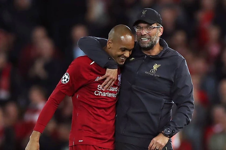 Приятно порадовал Фабиньо. Конечно, в первом тайме у всей полузащиты «Ливерпуля» было очень много свободы и времени на принятия решений (потому что им там никто не мешал). Бразилец, на мой взгляд, этим подарком соперников воспользовался лучше всех. Как результат – шикарный голевой пас. Во втором, скорее всего, по заданию тренера располагался чуть ниже. Видимо, для помощи защите в борьбе с великим и ужасным джокером «МЮ» Маруаном Феллайни.