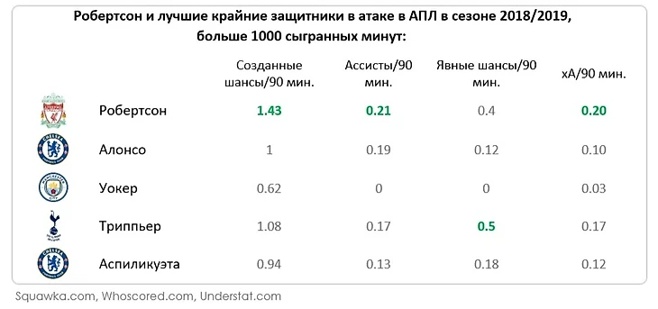 Если брать в расчет статистику, то в атакующих цифрах Робертсон ощутимо лучше других топовых крайних защитников лиги. Он доминирует почти в каждом ключевом атакующем показателе: