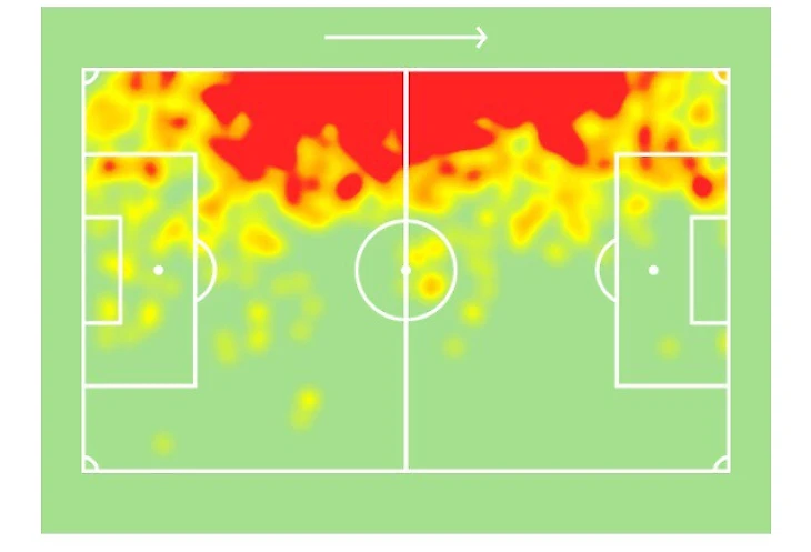 Система игры Юргена Клоппа подразумевает, что ширину в атаке создают именно крайние защитники, в то время как вингеры смещаются в центр. В этом сезоне Робертсон – один из главных плеймейкеров команды, как бы сумасшедше это ни звучало: по созданным явным шансам он второй в команде после Салаха (6 против 9), а по отданным голевым передачам – делит второе место с Фирмино. Помимо активности впереди, он успевает отрабатывать и в обороне: в этом сезоне он лучший в команде по отборам. Его умение быть везде отлично видно по тепловой карте этого сезона – Робертсон умудряется часто получать мяч даже в штрафной соперника: