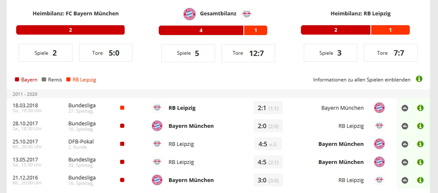 Самый зрелищный матч 16-го тура должен состояться на «Альянц-арене». Матчи «Баварии» и «РБ Лейпцига» пока ни разу не оставляли равнодушным никого. Обе команды всегда стремятся победить и показывают быстрый атакующий футбол. Правда, супер чемпионам из Мюнхена не до красивой игры, отрыв от Дортмундской «Боруссии» растет все больше и больше. Более того, когда «быки» лидировали в сезоне 2016/17 было, куда более очевидно, что мюнхенцы настигнут выскочек, чем в этом сезоне «желто-черных». Интересным является и тот факт, что к предстоящей игре команды подходят соседями по турнирной таблице. «Бавария» в последних трех матчах снова обрела былую стать. Команда Нико Ковача последовательно победила «Вердер» (2:1), «Нюрнберг» (3:0) и «Ганновер» (4:0). «Быки» в свою очередь не оставили никаких шансов «Майнцу» одержав победу в предыдущем туре со счетом 4:1. Никто не отрицает, что «Бавария» очевидный фаворит в этой паре, однако, если что-то пойдет не по плану у команды Нико Ковача, то могут быть различные интересные сценарии. «Бавария» в этом году не так стрессоустойчива в домашних играх нынешнего сезона, как на протяжении прошлых лет.Скорее наоборот. Родной стадион только добавляет ответственности за неудачи команды.