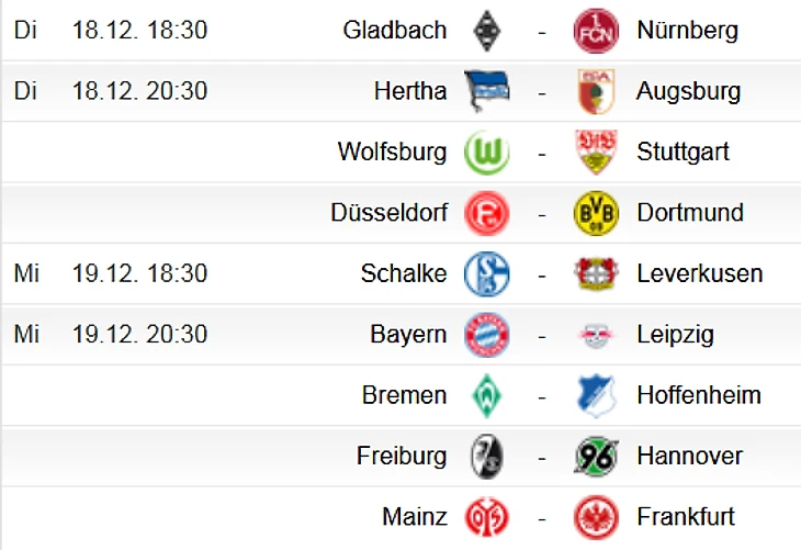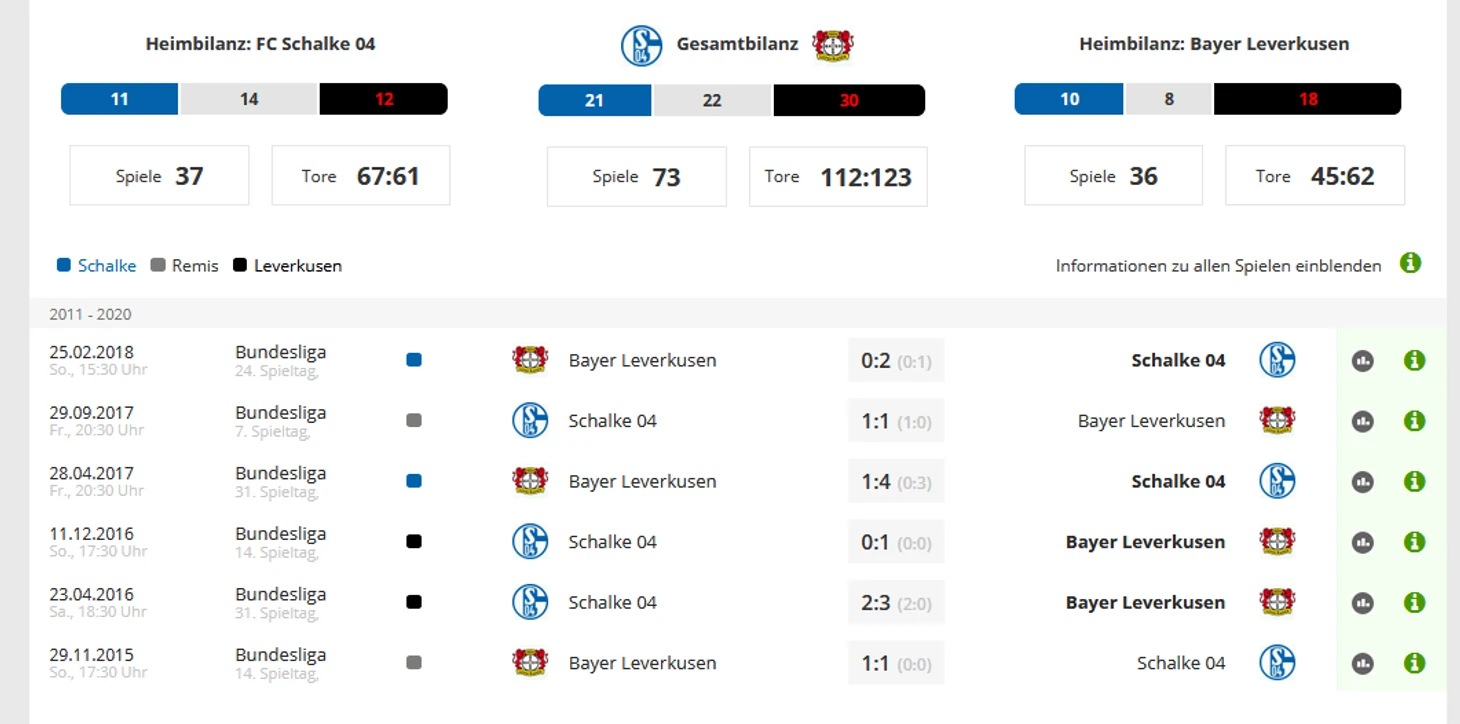 В среду должны состоятся матчи, которые должны держать в напряжении болельщиков больше чем во вторник. Например, такой игрой станет противостояние «Шальке» и «Байера», которые проведут свой матч на «Фелтинс-арене». Обе команды традиционно не жалеют нервов своих болельщиков. Плюс, в этом году эти две команды вместе принимают участие в европейских кубках и добились там права выступать в весенней части, но увы в чемпионате Германии не блещут. «Байер» расположился на 11-й строчке, а «кобальтовые» еще на две ниже. В случае победы «Шальке» сравняется с «Байером» по набранным очкам в турнире.