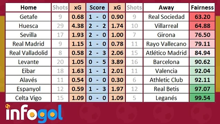 Оценка справедливости результатов 16-го тура Ла лиги от Infogol