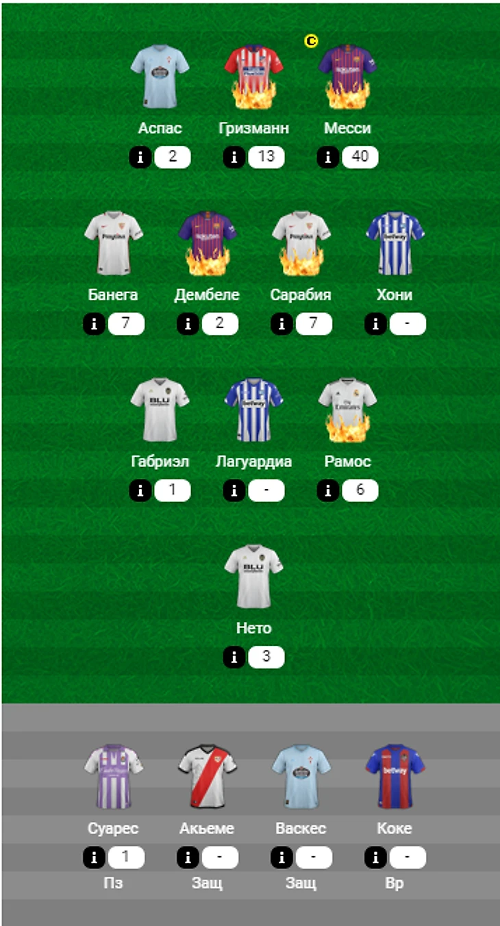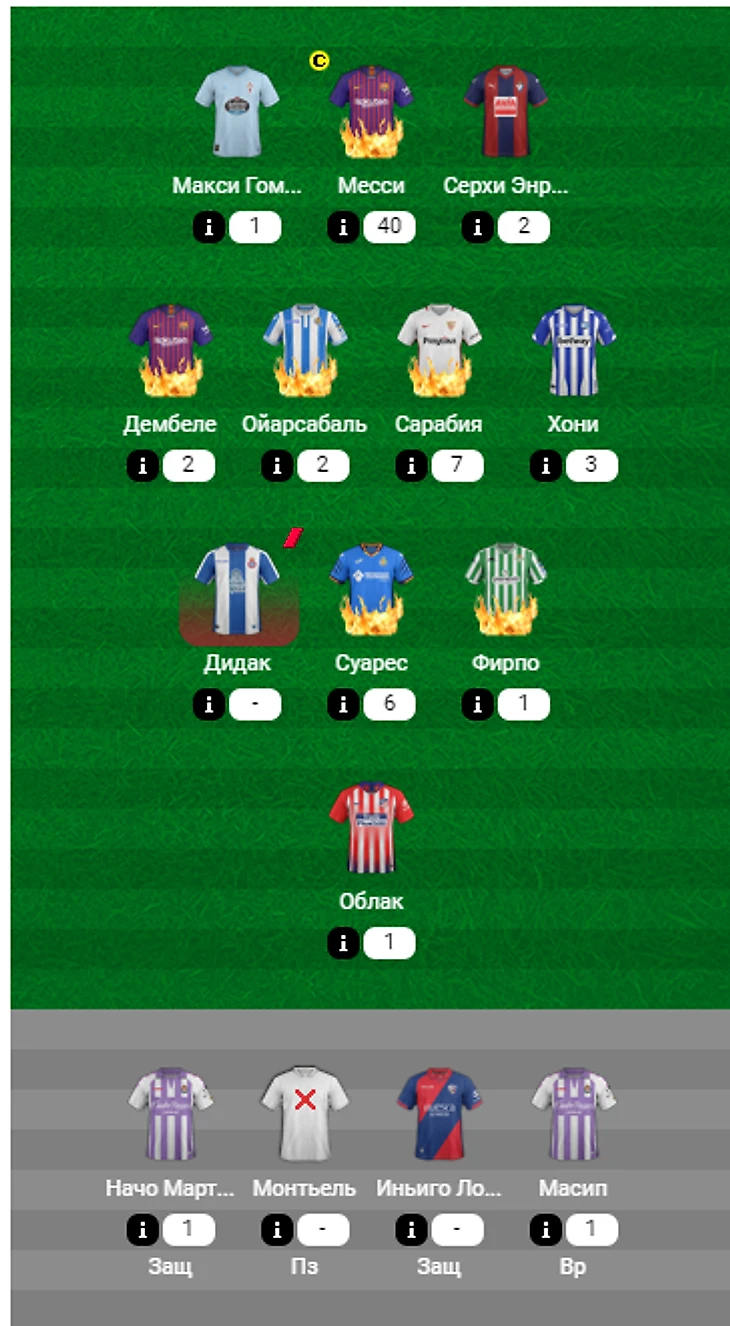 Тут как бы и хочется заполнить слот Барсы кем-то постабильнее чем Усман Дембеле, но кадровые проблемы вынуждают оставить француза в покое. Зато остальных хавбеков мы щадить не станем: Сарабию подменит Ойарсабаль, а Банегу – лично Хосе Луис Моралес. Ну и последний ход – на укрепление обороны: травмированного Гэбриэла заменит сам Диего Годин.