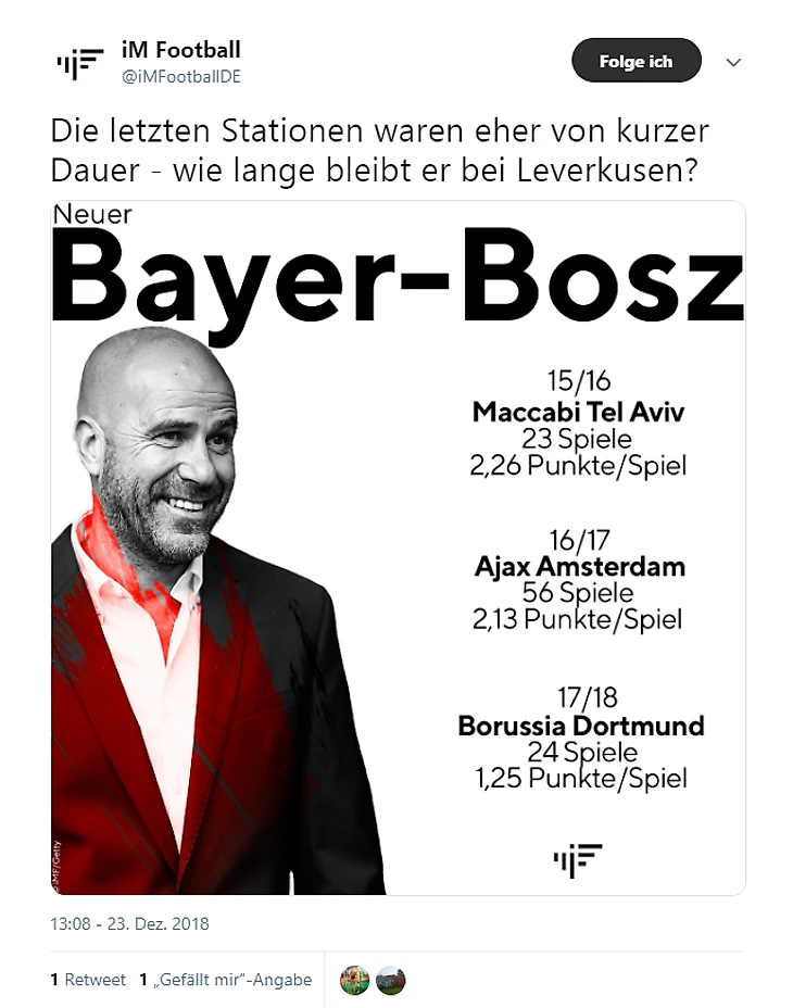 На следующий день после матча с «Гертой» у «Байера» появился новый главный тренер. «На прошлом месте Бош был довольно короткий срок – на сколько он задержится в Леверкузене?»