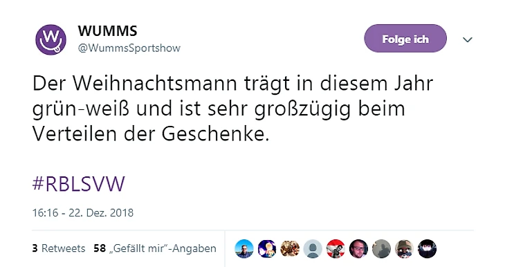 «В этом году Дед Мороз носит зелёно-белое и очень щедро раздаривает подарки», – шутят про гол Тимо Вернера в ворота «Вердера».