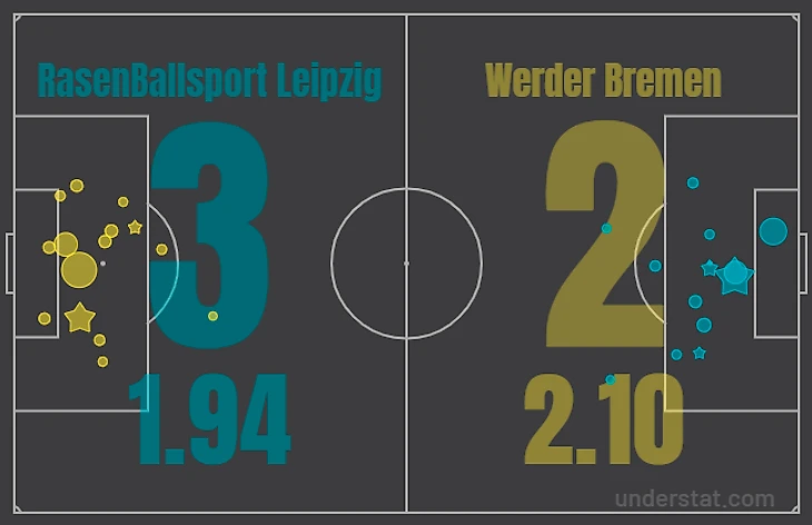 «РБ Лейпциг» выиграл четыре из шести встреч с «Вердером» (одна ничья, одно поражение).