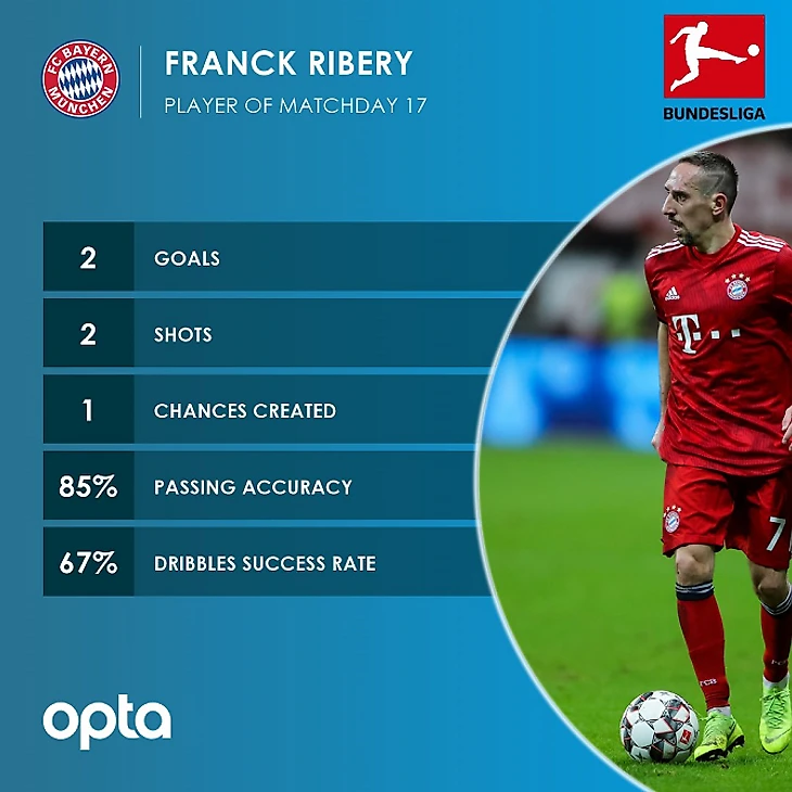 Рибери оформил свой десятый дубль в матчах Бундеслиги. Он стал самым возрастным игроком «Баварии» (35 лет, 259 дней), забившим более одного мяча за матч.