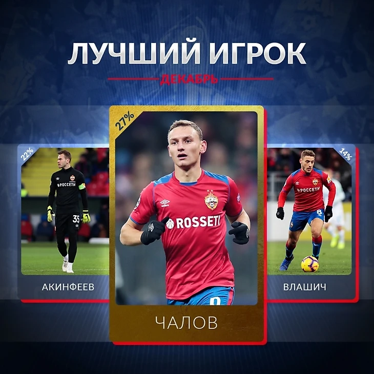 Болельщики ПФК ЦСКА признали Фёдора Чалова лучшим игроком команды в декабре.