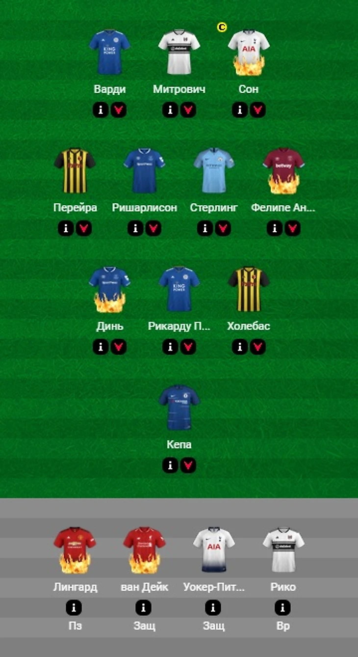 Нападение. Салах - 9, Кейн - 6, Обамеянг - 6. Эта троица продолжает стабильные выступления, а что по предстоящему туру в матчах Арсенала и Ливерпуля отличался только египтянин (2+1 в его активе), а Кейн забил победный гол волкам в первом круге. Снова набирать стал Серхио Агуэро 9,0, его действия привели к единственному голу в ворота Лестера, остерегу, что аргентинец джокером на этот тур может и не стать, у Куна всего 1+1 в гостевых встречах. По-прежнему вне конкуренции Сон Хын Мин 7,5, и он уже точно получит приз лучшего игрока декабря, просто вдумайтесь, кореец набрал 7Г + 5П за 9 игр, при такой результативности шпор даже не обязательно выбирать между ним и Харри.