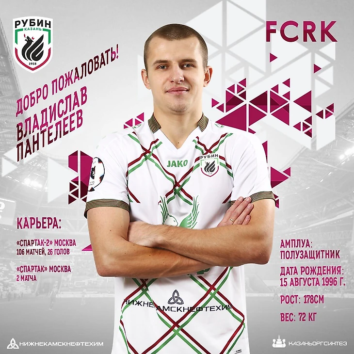 Владислав Пантелеев официально перешел в «Рубин». 21-летний полузащитник подписал свой первый контракт не со «Спартаком», в «Рубине» он может провести ближайшие 3,5 года.