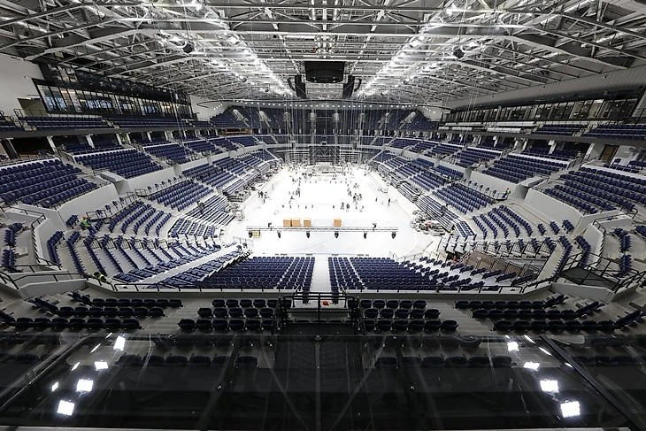 Оператор подходит к каждому сектору с пультом и задает нужную конфигурацию. Если убрать хоккейные борта, то для концертов можно добавить дополнительные ряды: для этого основная часть трибун поднимается на пять метров, а из-под них вручную выкатываются другие.