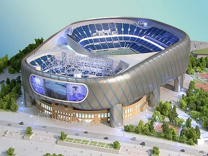 С приходом команды банка стилистика сильно изменилась. Задумка окупить проект через апартаменты и коммерческие здания осталась, но от многоэтажной застройки в духе «Москва-Сити» отказались. Для проектирования стадиона провели архитектурный конкурс – организаторы открылись для любых идей. Была заявка, предлагавшая оборудовать на крыше стадиона теннисные корты.